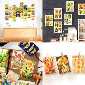 新しい50枚のかわいい手描き水彩漫画植物装飾壁カードアマゾンクロスボーダーベストセラーins風カード