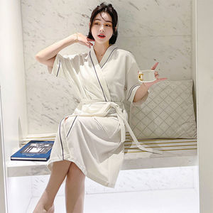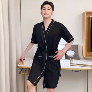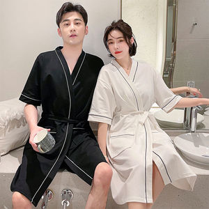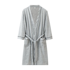 春と秋のカップルパジャマ長袖純綿シンプルな無地女の子快適なルーズメンズミッドレングスパジャマ