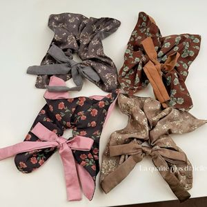 蝶結び小花無地スクエアスカーフ秋冬新作AB面腸リング甘い質感ポニーテールヘアロープヘアアクセサリー