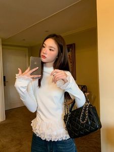 【工場の現物を設置して発見します】レースの紐の半高の襟の底のシャツの女性のデザイン感は身を修めるのがやせています。