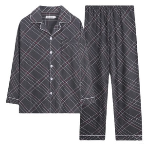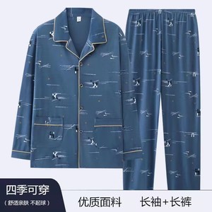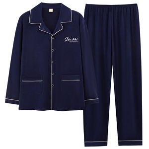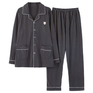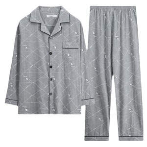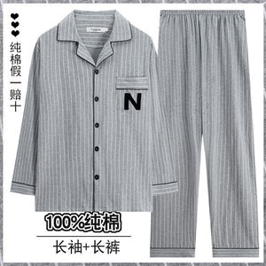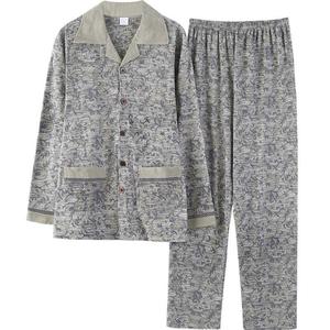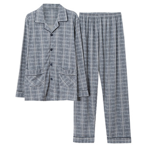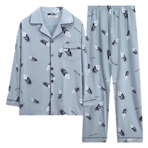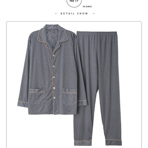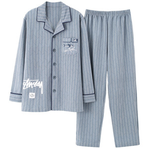 メンズホームウェアカジュアルコットン夏薄いカーディガン小さなラペル長袖ズボンパジャマ大きいサイズ 5XL