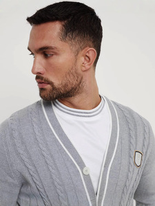 ウールと綿の混紡メンズVネックツイスト柄長袖カーディガンセータージャケットライトビジネス