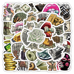 50枚の新しいお金の世界のステッカーの個性的な貨幣の落書きは携帯電話のスケートボードの戸棚の防水を飾って絵の卸売りを貼ります。