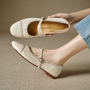 巨大ソフトフランス優しい風リベット低ヒール丸頭一字ボタン付きシングルシューズ2025春に通勤メアリージェーン靴