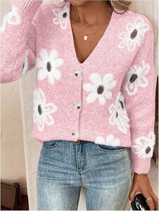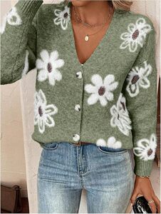 2024アマゾンの花柄ボタン前襟カーディガン欧米独立駅