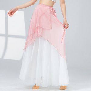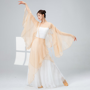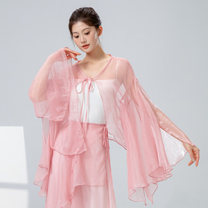 古典舞踊ガーゼツーピースエレガントな女性の中国舞踊服、古代スタイルの妖精のようなワイドレッグパンツパフォーマンス服