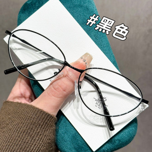 純欲清冷風素顔平光鏡女韓系高智感銀糸細い辺猫眼近視メガネフレーム周囲顔