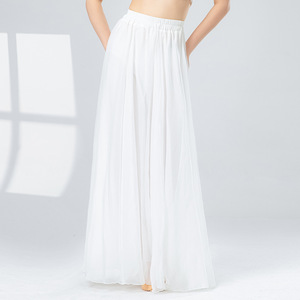 古典舞踊用ワイドパンツ、女性用エレガントなメッシュパンツ、モダンダンス練習着、ダンスパンツ、女性用ゆったり白パンツ