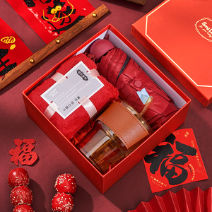 33. 八角コーヒーカップ+赤い傘+ハンドウォーマー+スカーフ+ウェディングタオル【赤いギフトボックス】