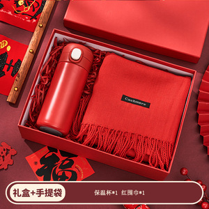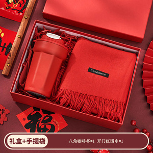 36. 八角コーヒーカップ + 柿瓶 + スカーフ + ハンドウォーマー [赤いギフトボックス]