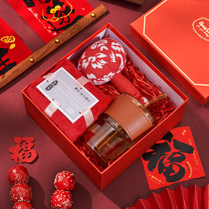27.オレンジ竹カップ+赤いタオル+赤い傘[赤いギフトボックス]
