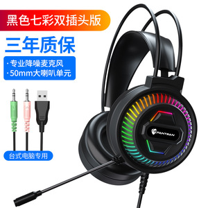 潘森PSH-400のコンピュータのヘッドセットはニワトリのRGBのイヤホンの7.1USBコンピュータの電気競争のゲームの有線のヘッドセットを食べます。