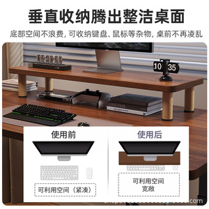 デスクトップコンピュータモニター高架デスクトップ無垢材スタンドオフィスラップトップデスクモニタースタンド付き