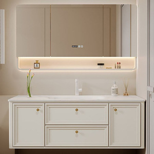 フレンチクリームスタイルのバスルームキャビネットスレートホットカーブ一体型洗面器オークペイント組み合わせ洗面器洗面器洗面器