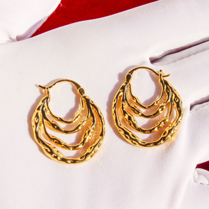 真鍮メッキ真金欧米の小衆デザイン金色の線の層次感イヤリングの凹凸筋理バッグの耳ボタン351