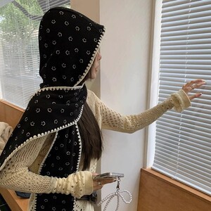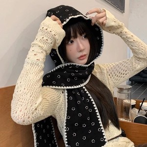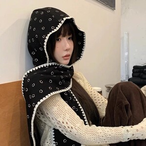 韓国の笑顔のプリントのマフラーの帽子の一体の女性の秋冬のかわいい百合の保温の防寒のニットのマフラー用