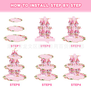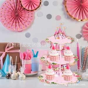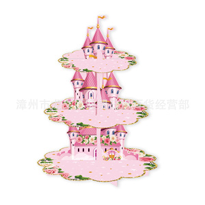 ピンクプリンセス城ケーキスタンド花ケーキスタンド女の子誕生日パーティー装飾品