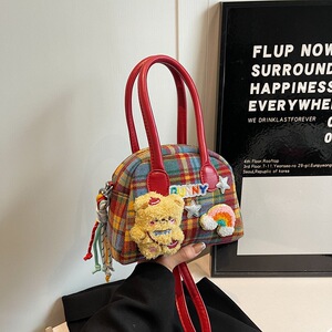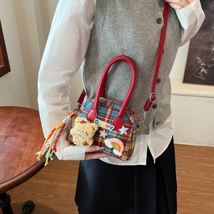 小銭入れバッグ 2025 新しいレトロかわいいメッセンジャーバッグチェック柄イヤホンハンドバッグ通勤ショルダーバッグ