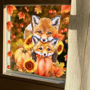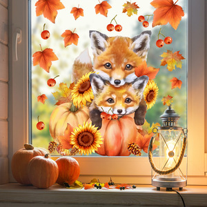Dj 9254漫画キツネカボチャヒマワリ落葉窓貼り静電貼り両面可視ガラス貼りホーム装飾