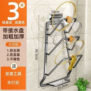 新品モデル丨太鍋蓋ラック[3層]+アルミ水受け皿灰*鍋蓋ラック