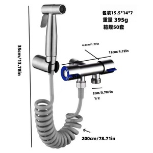 [青いホイール + 304 セットのプラスチックブラケット] 304 ブラケットダブルハンドルデュアルコントロール蛇口 + 304 スプレーガン + 2m PU グレーシャワーパイプ