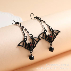 欧米の越境創意新型大げさなハロウィンのアクセサリーのゴシック式の黒い赤い目のコウモリのイヤリングの女性