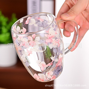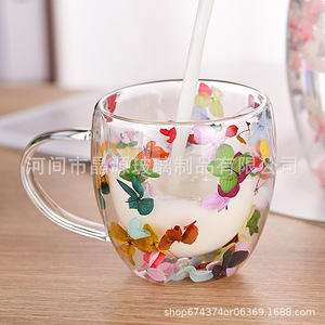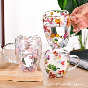 国境を越えたインターネット有名人の家庭用高ホウケイ酸断熱カップ、ジュースカップ、二重ガラスカップ、美しいお土産、ドライフラワーカップ