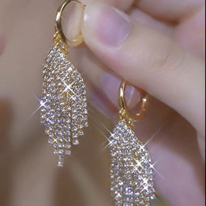 軽くて豪華なフルダイヤモンドのロングタッセルイヤリング、エレガントでハイエンドなパーティードレススタイルのイヤリング、女性用の誇張されたユニークなイヤリング