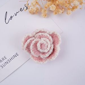 韓国の布芸の手作りのdiyニットの毛糸のバラのツバキの花の立体の花の子供の髪飾りのアクセサリー
