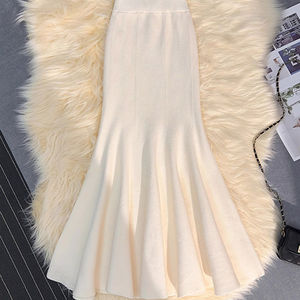 ニットの尾のスカートの女性の2025秋の新型は中長の高腰のa字の包みの尻の気質の優しい半身のスカートを着ます。