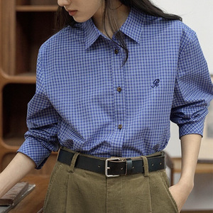 HAVE/RICE レストラン シーソルトダイアリー コットン先染め韓国レトロ万能MIU系ブルーチェックシャツ