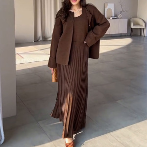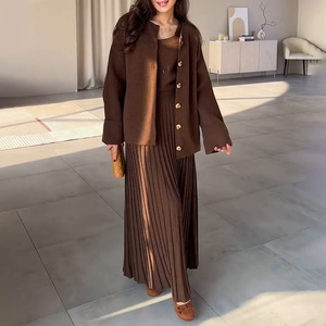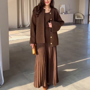 2025秋冬新型越境ロシア高襟美ラードボタンカーディガンコート百パートナーセーター三点セット