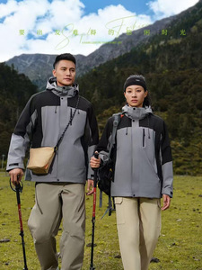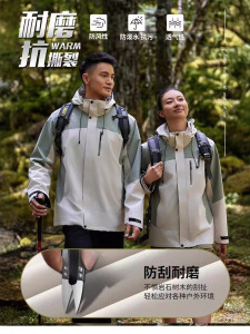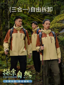 秋冬モデル三合一戸外突撃服ジャケット男女保温取り外し可能な工装風衣印字