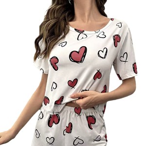 SHEIN起爆金クロスボーダー欧米プリントハート半袖ショーツホームウェアセットファッションカジュアル2点セット