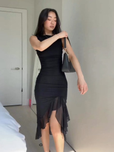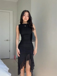 外国貿易ヨーロッパとアメリカのクロスボーダー婦人服 2025 新しいファッション純粋な欲望スタイルノースリーブウエスト痩身バックレスドレス卸売