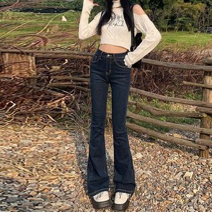 ブルーグレーのマイクロスピーカーの弾力性の高い腰のジーパン