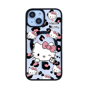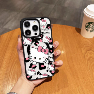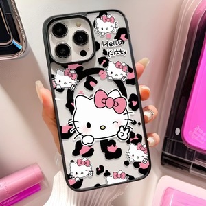 iPhone16、11/13/14/15ProMaxに適した、肌に優しいマグネット式ハッピーケイティ携帯電話ケース、キュートなハードバック