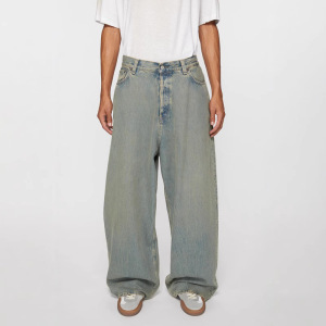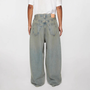 ACスタイルのレトロな古い洗濯水の色あせたゆったりとした広脚ジーンズ男女