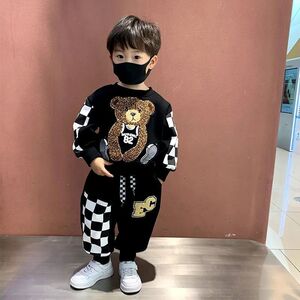 熊の刺繍の男の子のスーツの2025新型の洋気の赤ちゃんの春秋冬のガードルのズボンの子供のごろつきのかっこいい子供服
