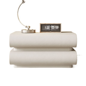 イタリア式の極めて簡単なベッドの頭の箱の3つの皮のネットの赤いクリームの風の寝室の大きいサイズの実木の個性のベッドのサイドの収納棚