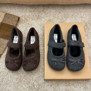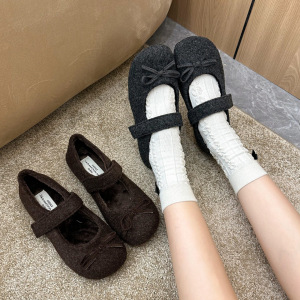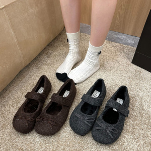 毛の靴の高級感の灰色のベルベットの靴2024保温綿の靴の女性のフランスの秋冬のメアリーの毛の靴
