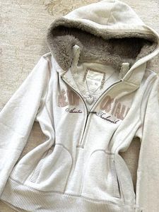 日のブランドの外国貿易の千年のギャルのパンクの中古のヴィンテージの古着の灰色の秋冬のベルベットのファスナーのパーカーのコート