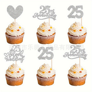 結婚周年25銀婚30 40 50金婚60ケーキ装飾焙煎ケーキ旗挿しカード