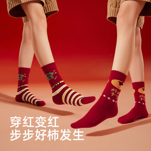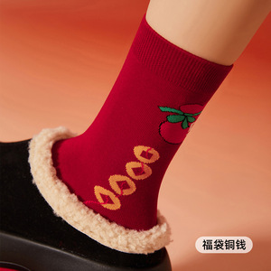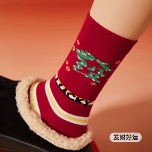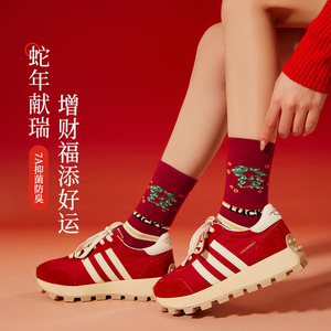 本命年の赤い靴下の女性の秋冬の中筒の靴下の2025蛇年の赤い新年の贈り物の長い筒の女性の綿の靴下