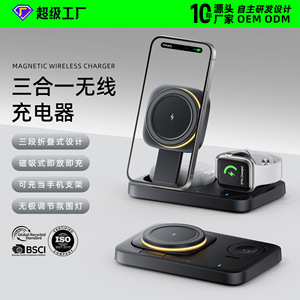 国境を越えた新製品折りたたみ式伸縮式磁気3-in-1ワイヤレス充電器、Apple携帯電話ホルダー用ワイヤレス充電に最適