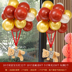 ドールベアバルーンセット-チェリーレッドシリーズ-無料の取り付けツールのフルセット