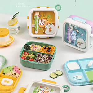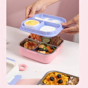 源の正方形の便利な取っ手は食器の調味料の箱の仕切りの4面を持ってプラスチックのステンレスの弁当箱の弁当箱を掛けます。