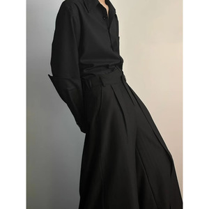 メンズハンサムな二重剣道ズボンカジュアルなゆったりしたズボンの高級感のあるズボンはしわに抵抗して熱を免除します。