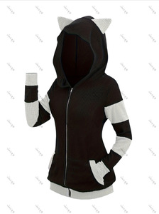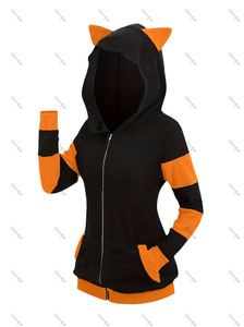 ヨーロッパとアメリカの秋冬スウェットシャツ厚みのある猫耳ミッドレングスカラーブロックフード付きクロスボーダースウェットシャツかわいいスタイルジッパーフード付きアウター