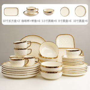 水波テクスチャーセラミックセット組み合わせ食器セットセラミックライスボウル家庭用ハイエンドプレートフルーツ宴会